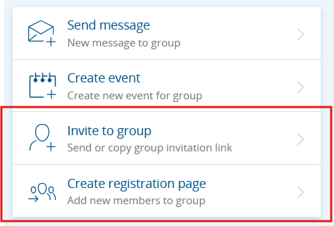 The Invite to group link is a direct link that lets people register for the group. It’s a good way to invite, for example, coaches for a group or a group whose people are already established, such as a racing group or team.