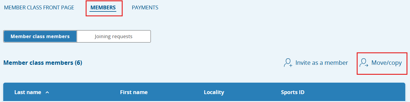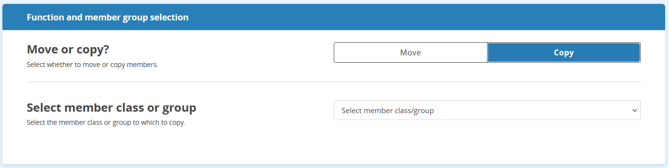 - Go to the membership class from which you want to move/copy members.