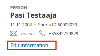 If the person themself or the guardian does not have access to the current login details, please contact Suomisport Customer Support, who can update the account details: