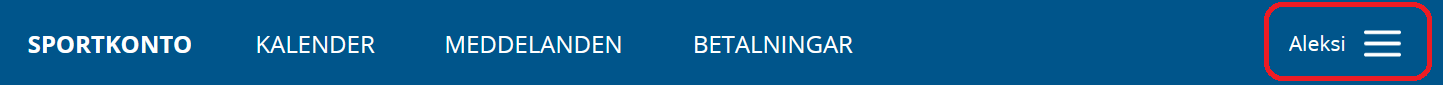 2. Huvudanvändaren navigerar till föreningens startsida via menyn i det övre högra hörnet.