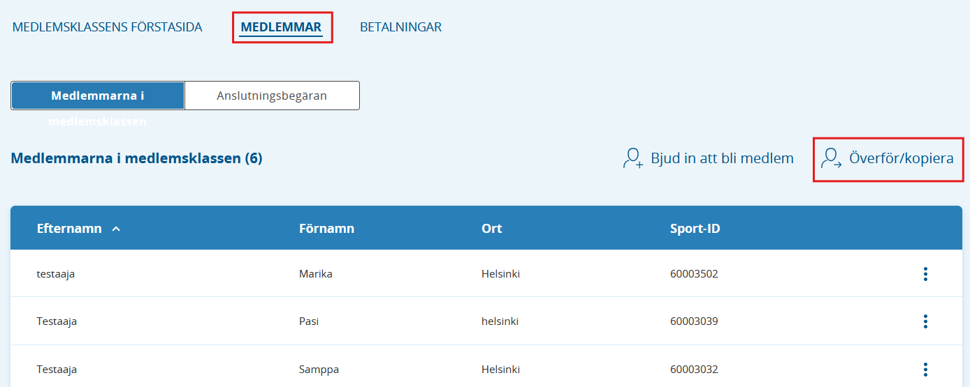 - Öppna sidan ”Medlemmar” och klicka på knappen ”Flytta/kopiera medlemmar”.