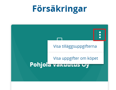 Logga in på ditt konto > klicka på Försäkringar > klicka på försäkringens ”Meny”‑knapp > välj Visa mer information.